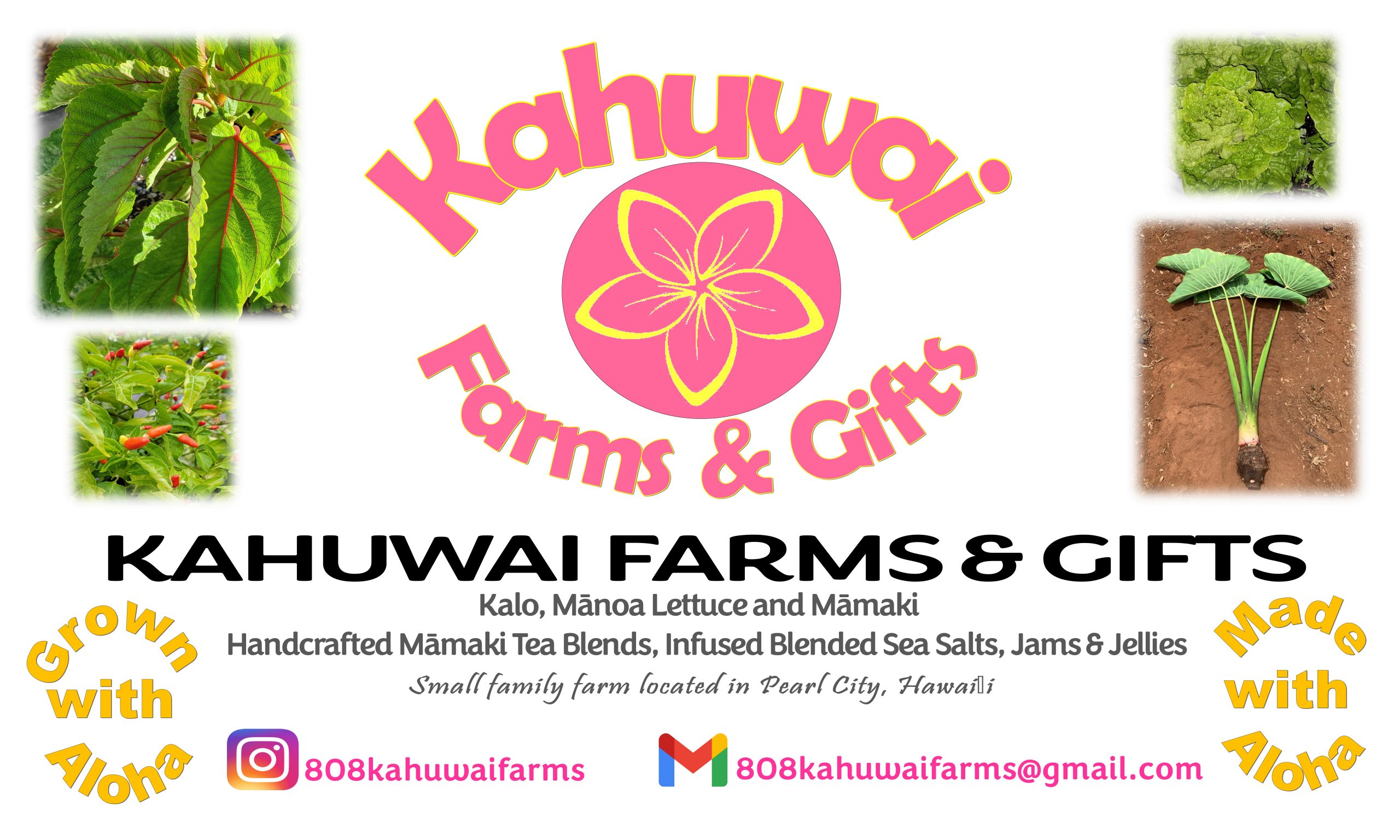 We are a small family farm growing Kalo, Mamaki, and other produce. We sell and market our Hawaiian Mamaki Tea, create small batches of island jams & jellies, and craft Hawaiian sea salt blends.