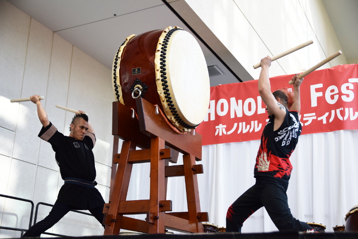 Hello everybody, once again we are Taikokozo. Our mission is for everybody to enjoy the taiko drum. This will be our 9th time to participate at the Honolulu Festival. Please enjoy our powerful taiko drumming performance.