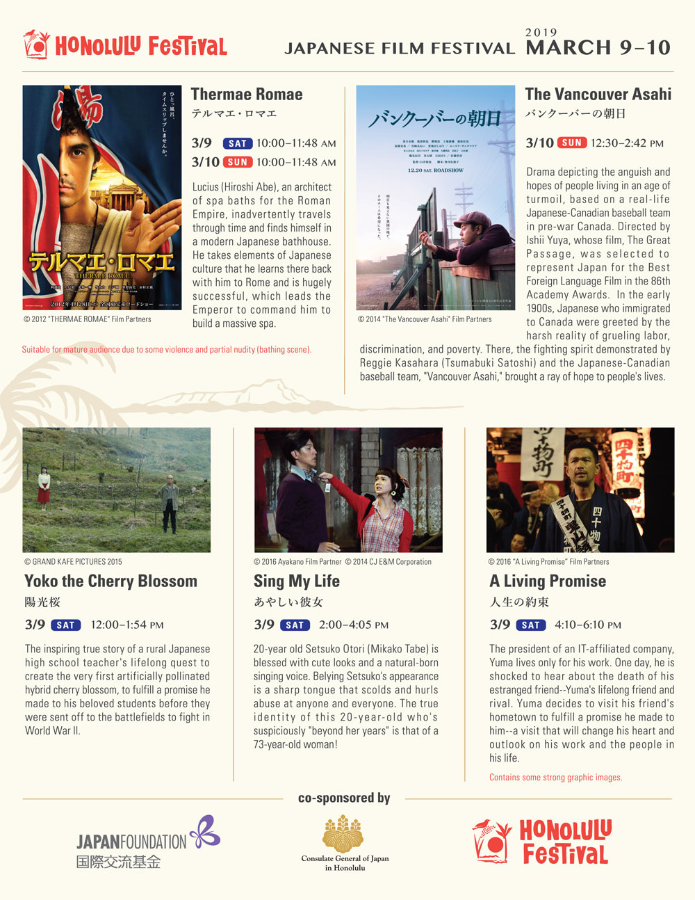 The inspirational Japanese movies will be shown at Hawaii Convention Center on Saturday March 9 and Sunday March 10. Admission is Free!