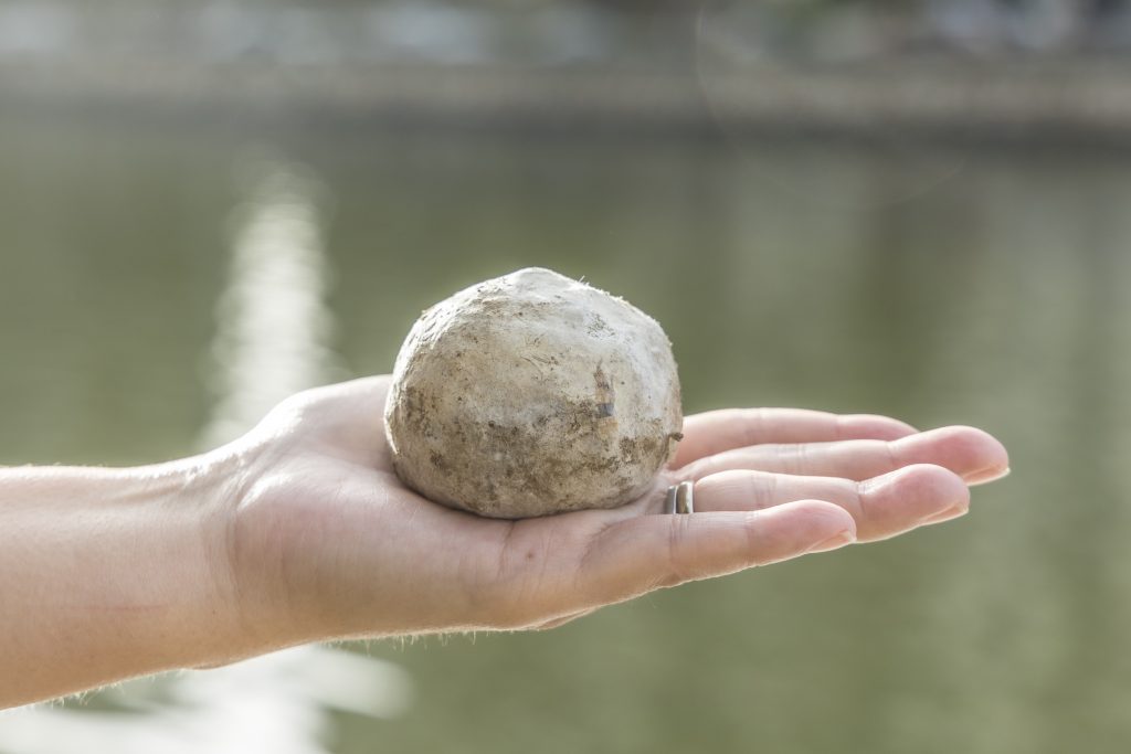 ゲンキ・アラワイ・プロジェクトは、学生、教育者、コミュニティと協力し、2026年までにアラワイ運河を昔のように泳げる、魚釣りができる水路とすることを目標に活動している団体です。ゲンキボールは、低コストで環境に安全なバイオレメディエーション技術を使って作られた泥団子。水路の底に溜まったヘドロを分解する有用微生物(EM)が含まれています。この泥団子に含まれる微生物が浄水作用を促すことで、運河から水が流れ込む海の生き物が住みやすい環境が整います。