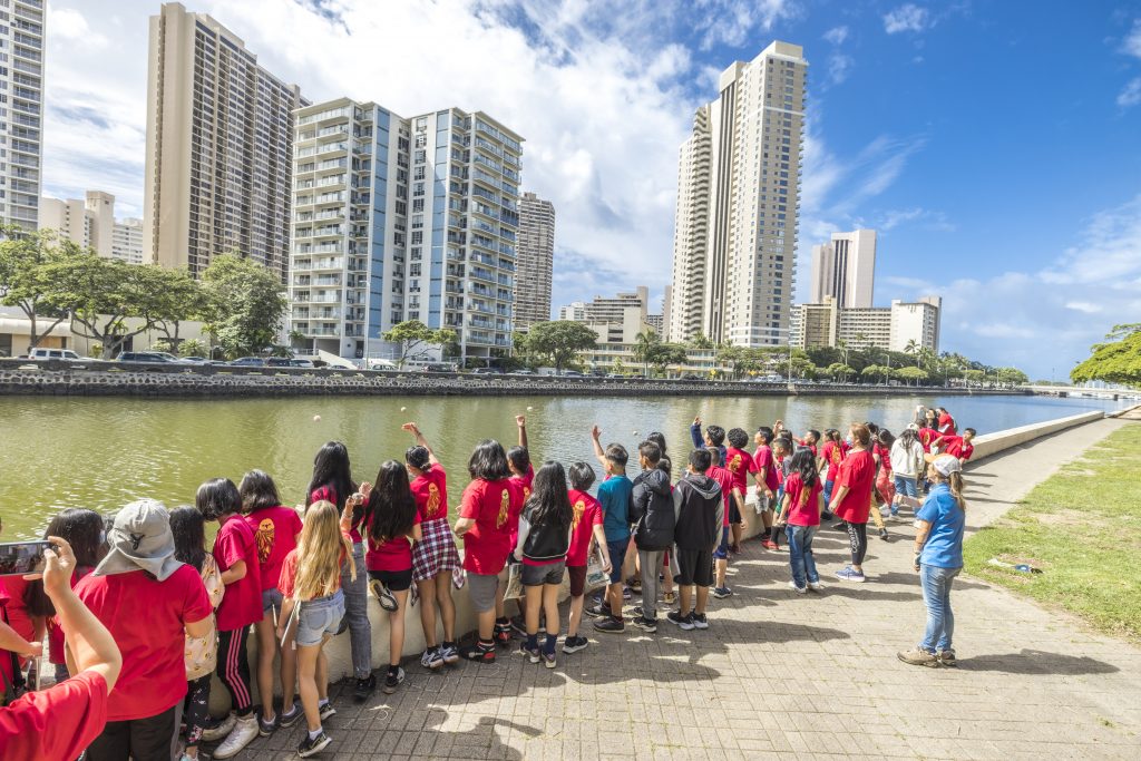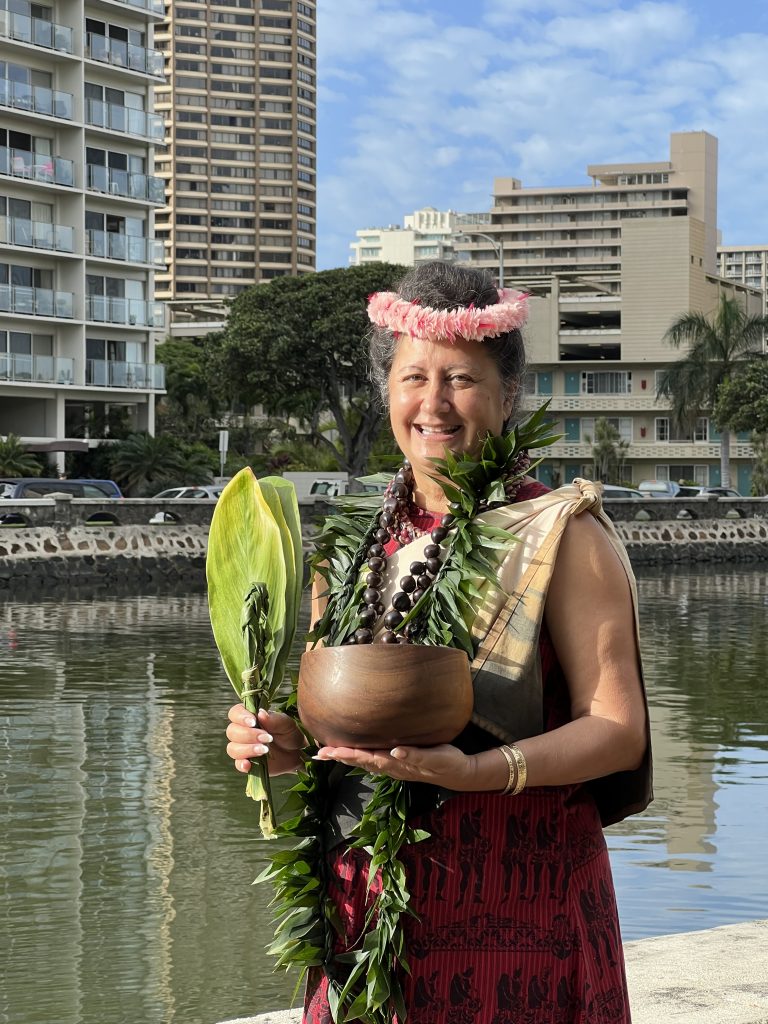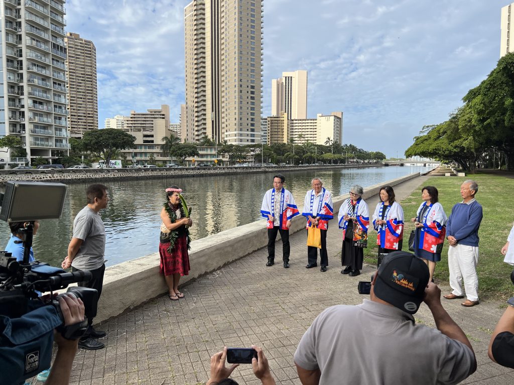 クムの祈祷は、アラワイ運河の水質改善と美しいハワイの自然の回復を願って、ハワイ語と英語で厳かに行われました。
