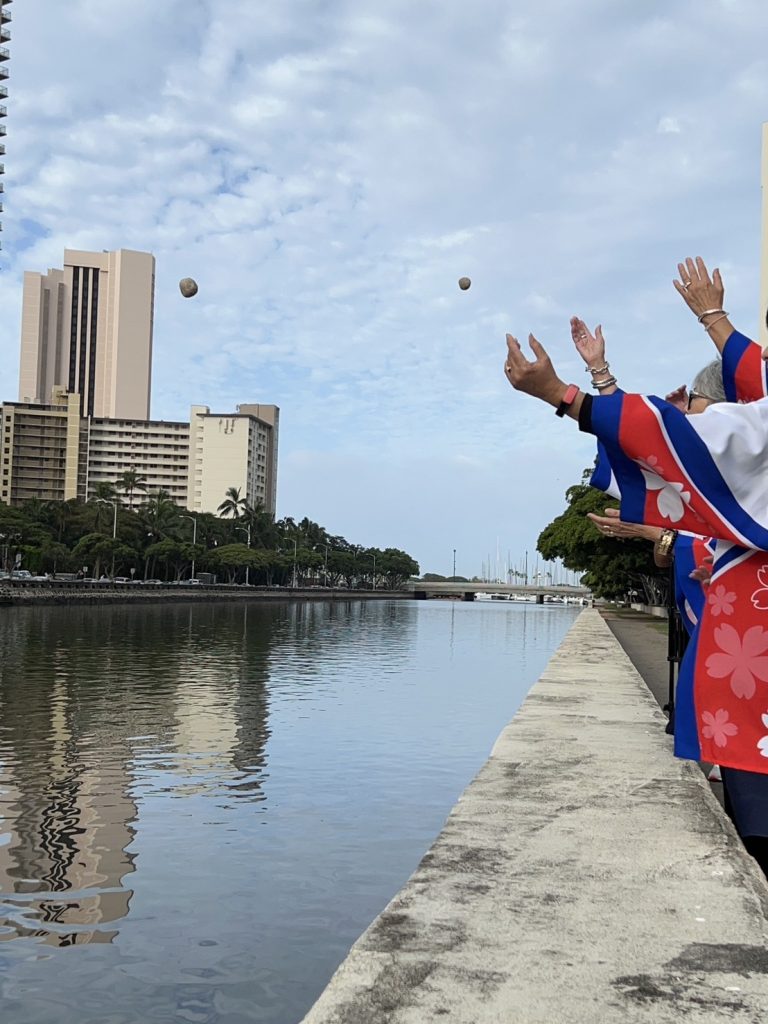 追ってホノルルフェスティバル久保哲也理事長と実行委員メンバーにより、ゲンキボールが投入されました。